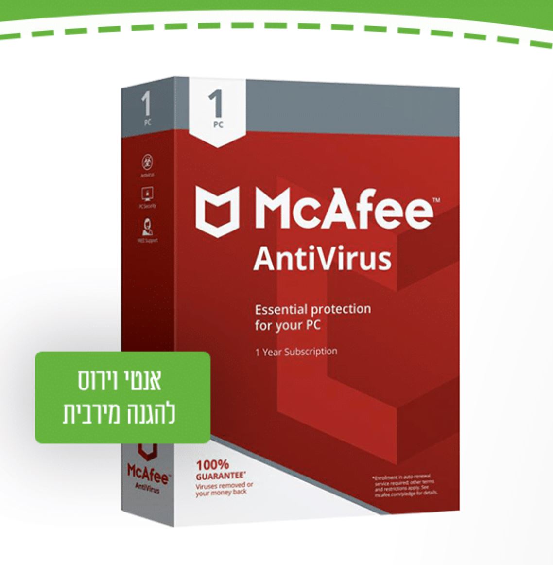 McAfee AntiVirus 2021 – הגנת אנטי וירוס חיונית למחשב. להגנה ולשמירת הפרטיות, בנוסף כלים לשיפור ביצועי המחשב והגנה בגילשה באינטרנט. המוצר הינו רישיון דיגטלי לשנה מהפעלת הרישיון